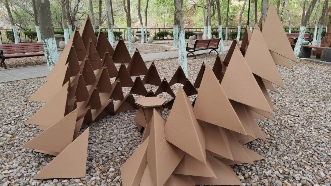 2020级建筑一、二班于欣园西门前举行瓦楞纸搭建活动。活动由20级建筑系举办,两个建筑班自由组队,每一组都带来了精彩的瓦楞纸搭建作品。