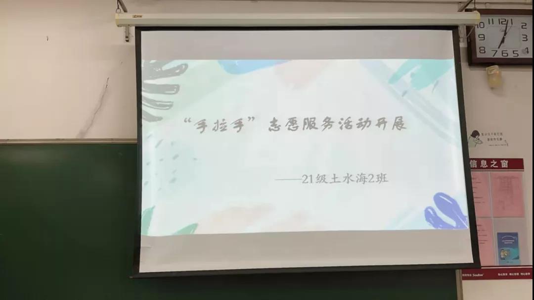 2021级土水海2班在教学群楼开展班级手拉手志愿活动动员会。本次活动由班级团支书苏颖主持,2021级土水海2班志愿活动队伍全员参加。