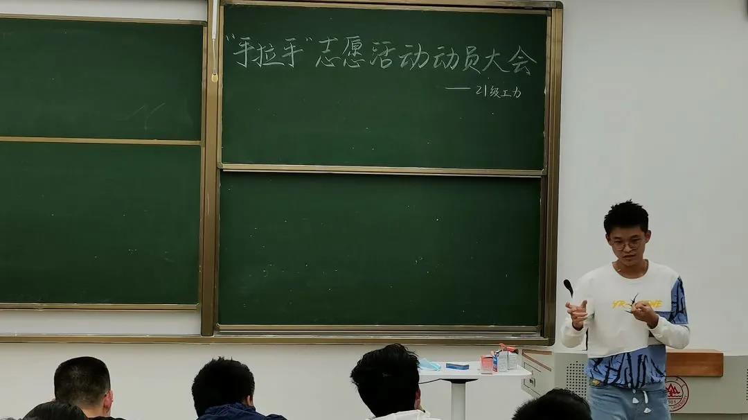 2021级工程力学班在教室举行“手拉手”志愿活动动员大会。本次活动由班长白芸嘉、团支书杨诗若主持,2021级工程力学班全体同学参加。