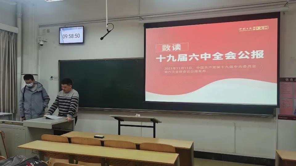 2020级工程力学班于兴隆山校区教学群楼1106开展党的十九届六中全会专题学习。本次专题学习由入党积极分子孙景树、赵昊阳主讲,2020级工程力学班全体同学参加。