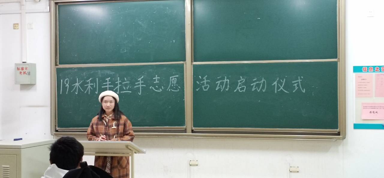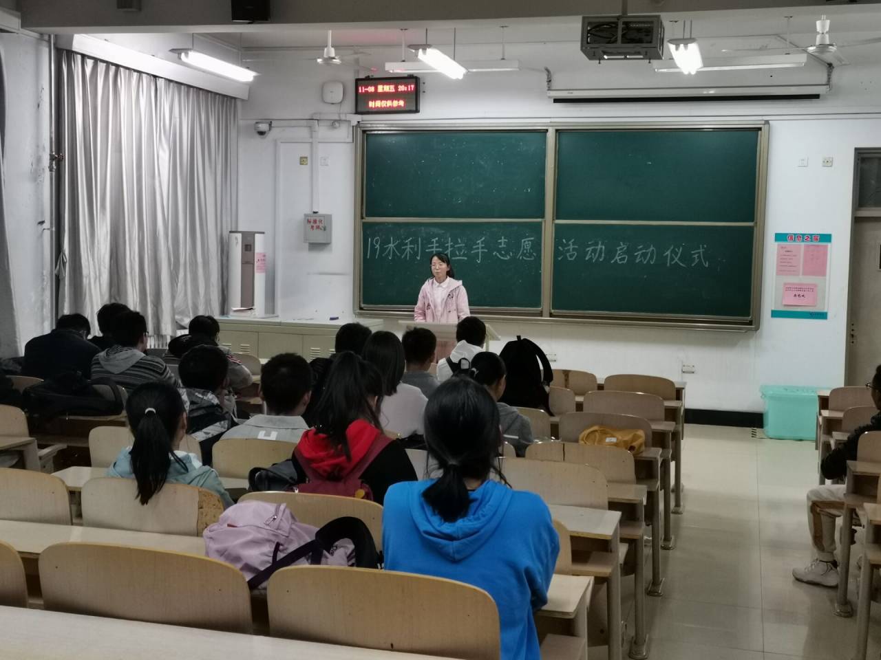 2019级水利水电班开展“手拉手”志愿服务活动启动仪式,仪式由团支书杨柳主持,全班同学参加此次仪式。