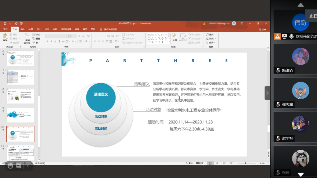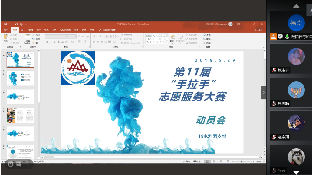 2019级水利班召开第十一届“手拉手”志愿服务活动动员会,由于疫情影响此次会议在腾讯会议进行,由团支书欧阳伟奇主持。