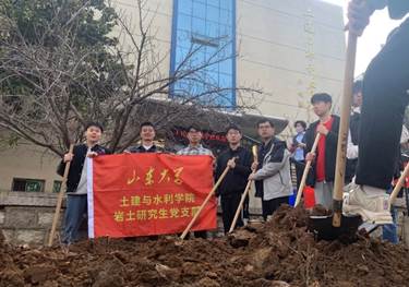 此次植树活动的成功开展,不仅为校园增添了新的绿色,更让支部党员在实践中增强了自己的环保意识和社会责任感。相信在今后的日子里,岩土研究生党支部的全体党员将继续以实际行动践行绿色发展理念,共同呵护我们的美丽校园。作为新时代岩土人,我们既要筑牢工程建设的“地基”,更要夯实生态文明的“根基”。