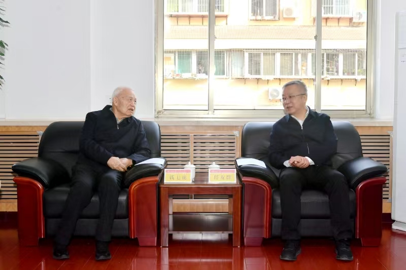 在与学生交流前,校党委书记任友群看望了钱七虎院士,感谢他为学校岩土工程学科发展和工科类拔尖创新人才培养作出的重要贡献。