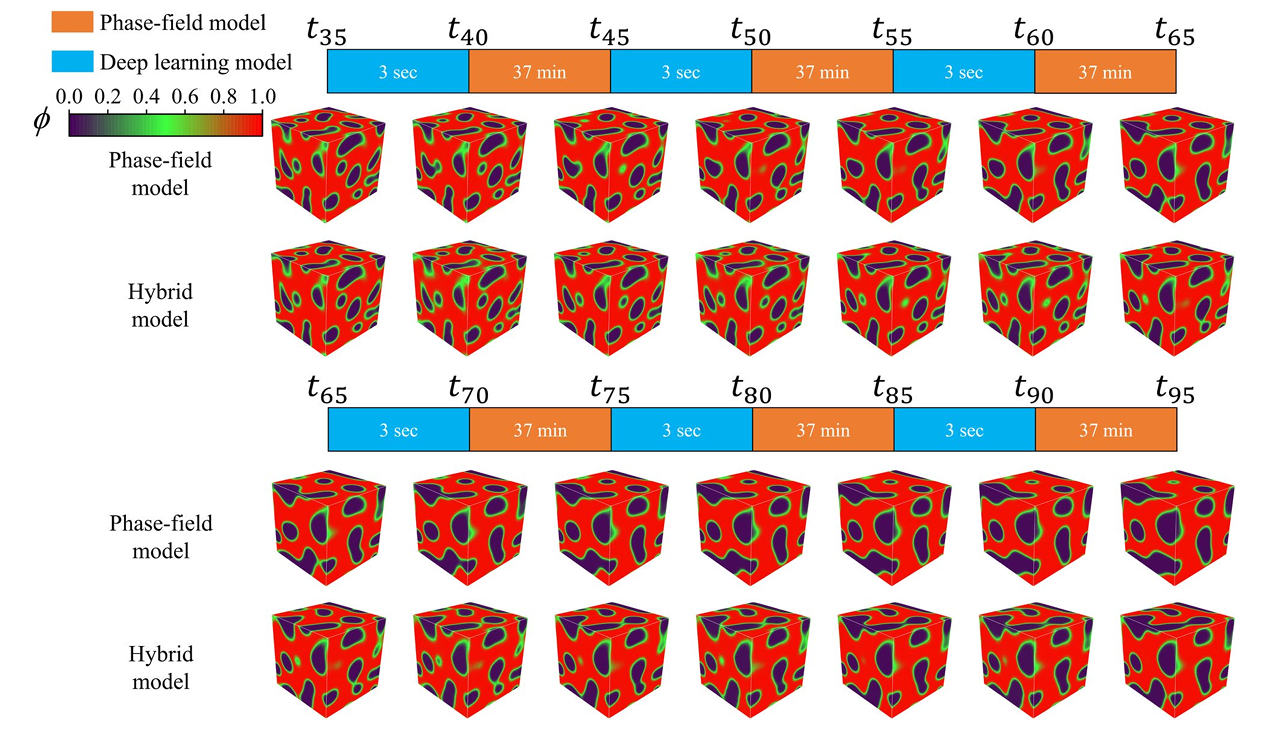 相场模拟是研究材料介尺度结构演化及其与力学性能关系的有效方法。然而,相场模拟需求解时-空关联的高阶偏微分方程,导致高精度、高维度、大体系、长时段相场模拟的时间成本和经济成本非常高昂。近日,工口实验室